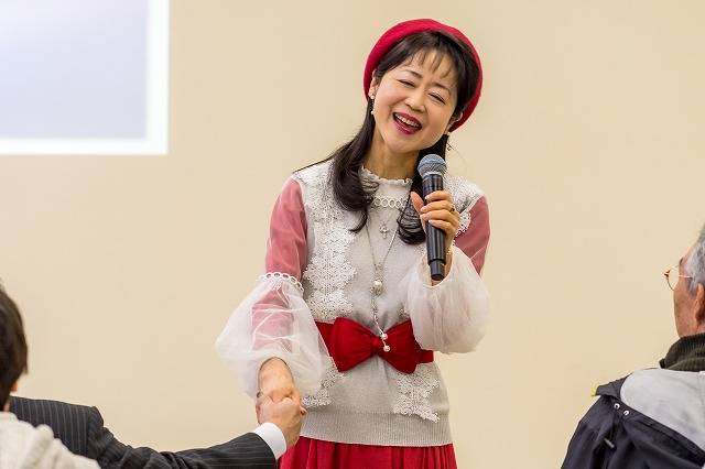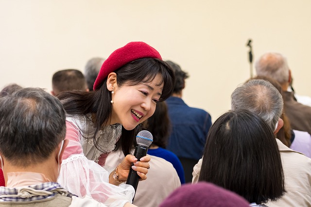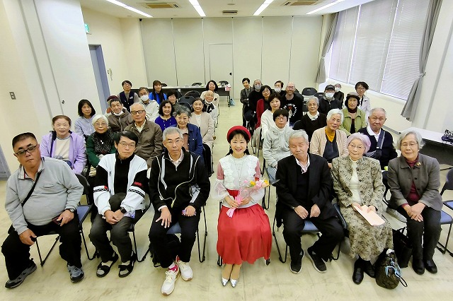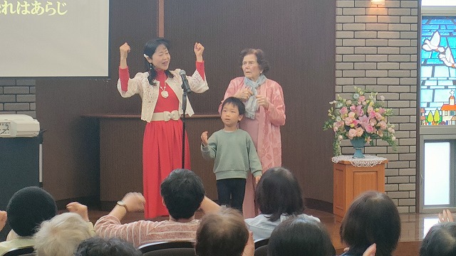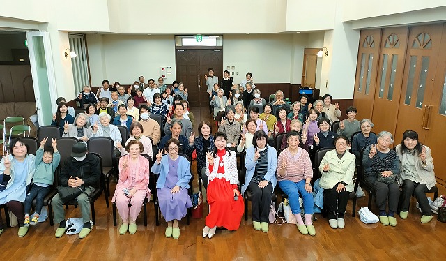 「メロディ会のつどい」なのですが、初めての方もずいぶんおられて、高齢者施設からも職員さんに支えられて参加して下さった方が多かったです。季節の日本唱歌「花」などを歌い、一緒に手話もしました。前に出て来てくれたステラ先生とケイイチロウ君、なんと96歳と6歳、年の差90歳のコラボでした~(驚)