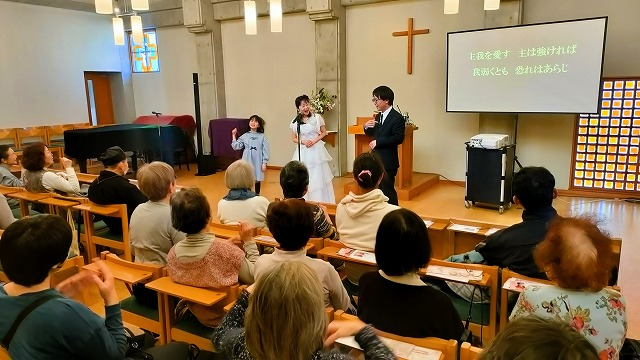 牧師の西澤献先生は、以前甲東教会でコンサートをした時の主任牧師・西澤先生のご子息です。もの静かな優しい先生で、一緒に手話をさせて頂きました。マオちゃんもとても上手でした!