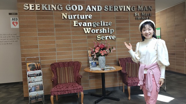 「聖道堂」は、1000人以上入る大きな教会で、駐車場に続々と車が入ってくる光景は、日本の教会ではなかなか見られないですね。