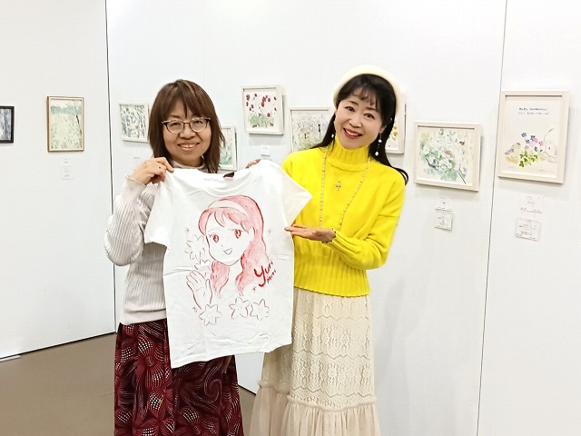 会場には、ななみさんの可愛い絵が、ステキにレイアウトされて飾られています。ポストカードやグッズも購入でき、ハンガーゼロに3000円募金した方には、ななみさんがTシャツにその場で絵を描いてくれるイベントも。私も、似顔絵を描いて頂きました!